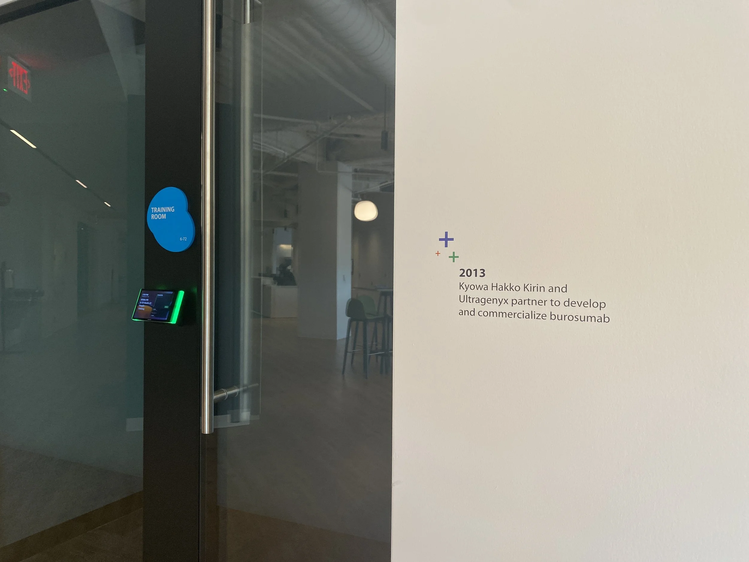 Kyowa Kirin moved their headquarters to Princeton NJ, here they paid homage to their Japanese parent holding company through the use of Shibori (japanese tie dye) inspired illustrations, custom shaped signage, and branded framed artwork.